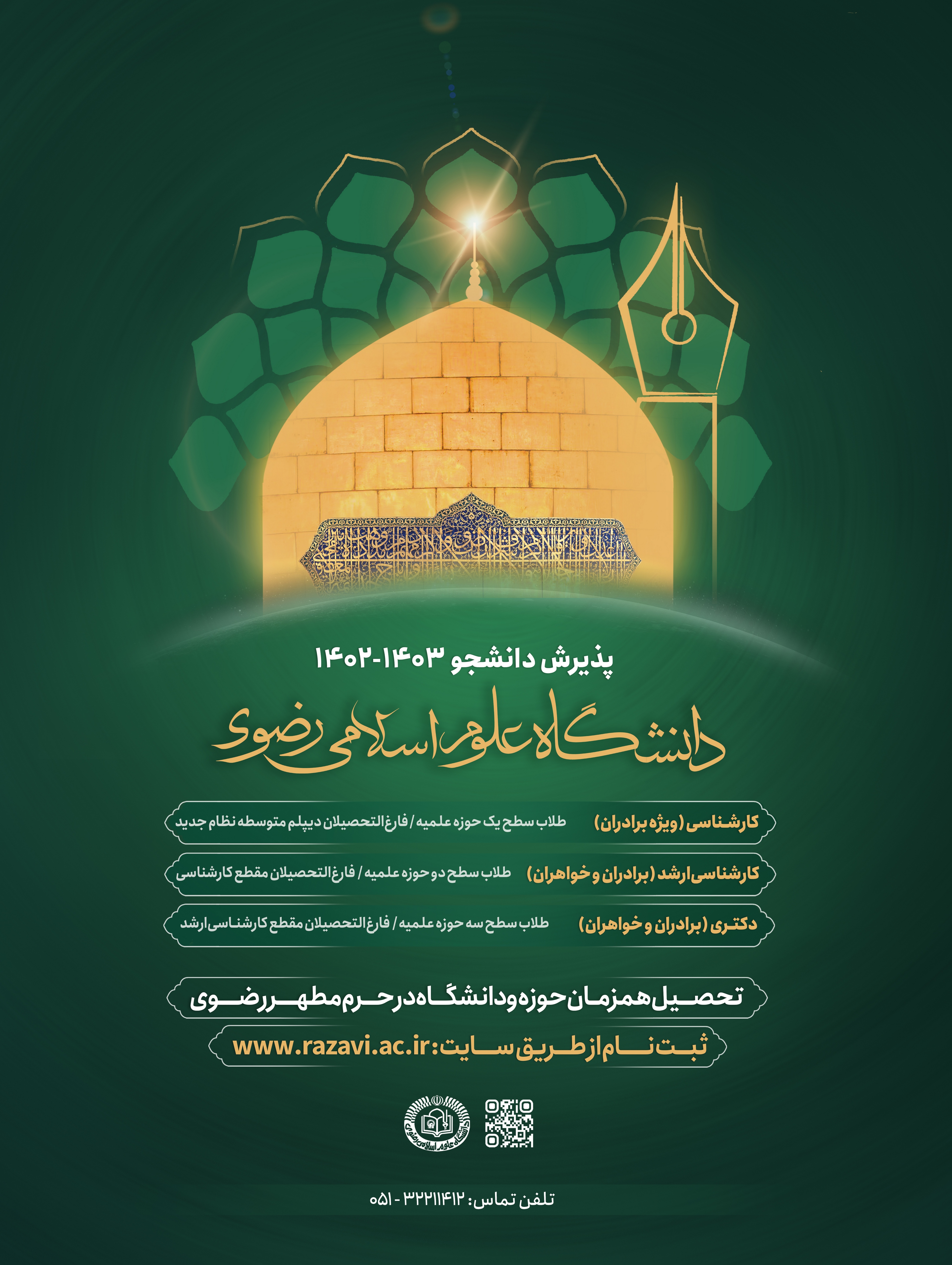 برای اطلاع از رشته ها و ثبت نام در آزمون ورودی دانشگاه علوم اسلامی رضوی به پوستر زیر مراجعه کنید.