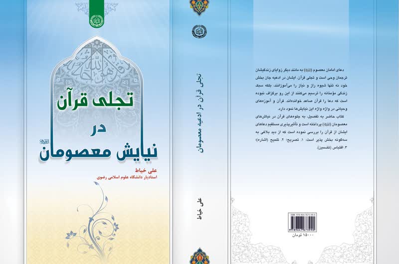 به گزارش روابط عمومی دانشگاه علوم اسلامی رضوی، کتاب تجلی قرآن در نیایش معصومان نوشته حجت الاسلام والمسلمین علی خیاط، مدیر حوزه علمیه خراسان، اثری پژوهشی در زمینه بررسی تطبیقی و مفهومی ادعیه بر پایه قرآن کریم است که در مجموعه منشورات قرآنی دانشگاه علوم اسلامی رضوی ثبت و منتشر شده است.