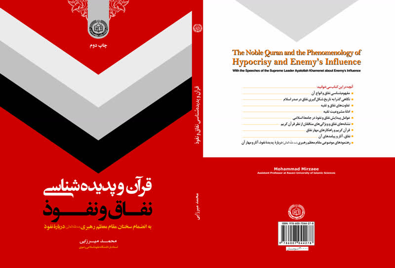 قرآن و پدیده شناسی نفاق و نفوذ کتابی است که حجت الاسلام والمسلمین دکتر محمد میرزائی، عضو هیئت علمی و دانشیار دانشگاه علوم اسلامی رضوی به رشته تحریر درآورده و به انضمام سخنان مقام معظم رهبری در باره نفوذ، به این موضوع پرداخته است.