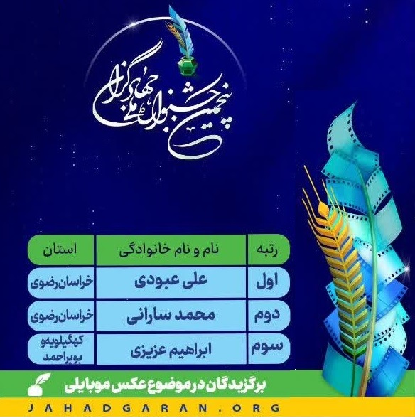 عکس طلاب و دانشجویان جهادی دانشگاه علوم اسلامی رضوی در زمینه مسابقه عکس موبایلی در پنجمین جشنواره ملی جهادگران رتبه نخست را کسب کرد.