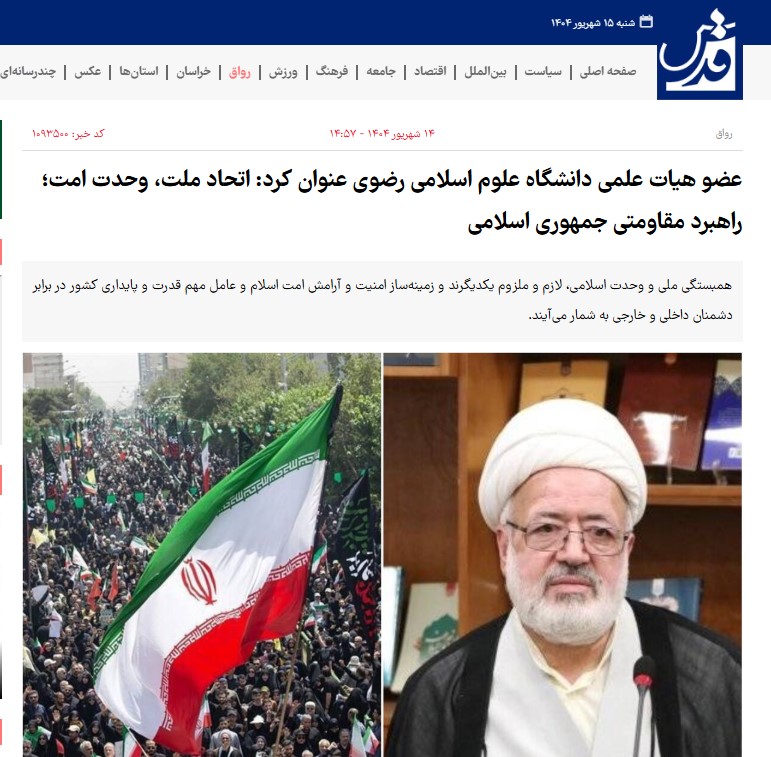 عضو هیات علمی دانشگاه علوم اسلامی رضوی در پایان خاطرنشان کرد: این تصور خامی است که گمان شود این رژیم دژخیم به فلسطین بسنده خواهد کرد، اینک تجربه لبنان و سوریه و جنگ تحمیلی دوازده روزه، پیش چشم ماست. بنابراین، تلاش برای وحدت امت اسلامی و کمک به مبارزان مسلمان درمنطقه، وظیفهای دینی و اخلاقی و در راستای تأمین مصالح و منافع ملی و حفظ وحدت ملی است.
