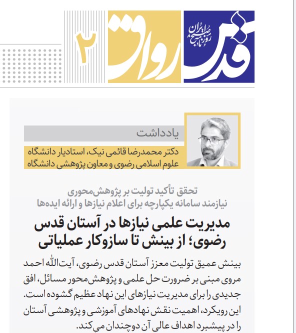 مدیریت علمی نیازها در آستان قدس رضوی؛ از بینش تا سازوکار عملیاتی