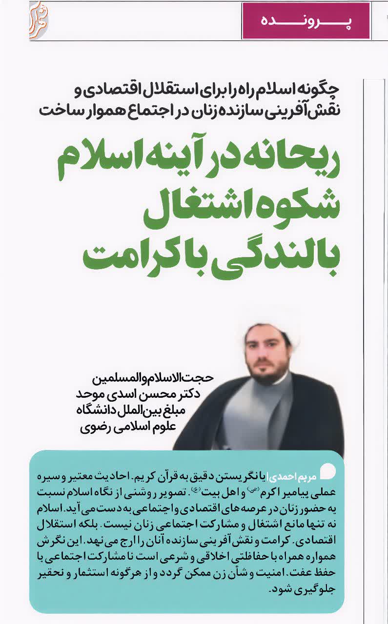 ریحانه در آینه اسلام شکوه اشتغال بالندگی با کرامت